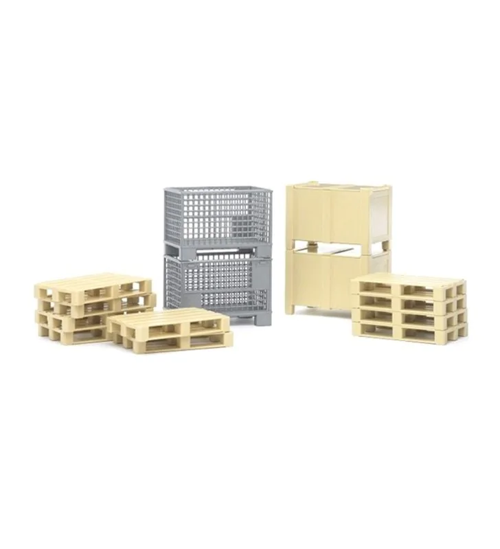 W zestawie znajdują się opakowania do przechowywania, magazynowania oraz transportowania ładunków. Dzieci mogą czerpać więcej przyjemności z zabawy dzięki dołączonym paletom euro, koszom oraz skrzyniom z otwieranym wiekiem. Transportowane towary nie zostaną uszkodzone, a na magazynie będzie panował większy ład i porządek.