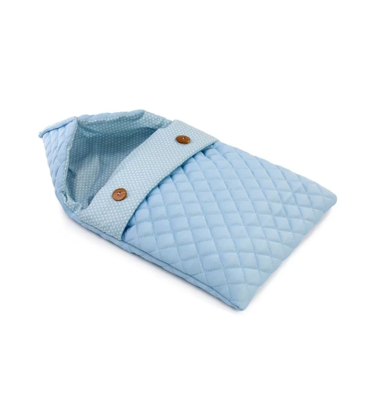 Duży niebieski śpiwór 3997334 od hiszpańskiej marki Asi przyda się jako dodatek wszystkim młodym mamom. Becik przeznaczony jest dla lalek od 42 cm do 46 cm wysokości.