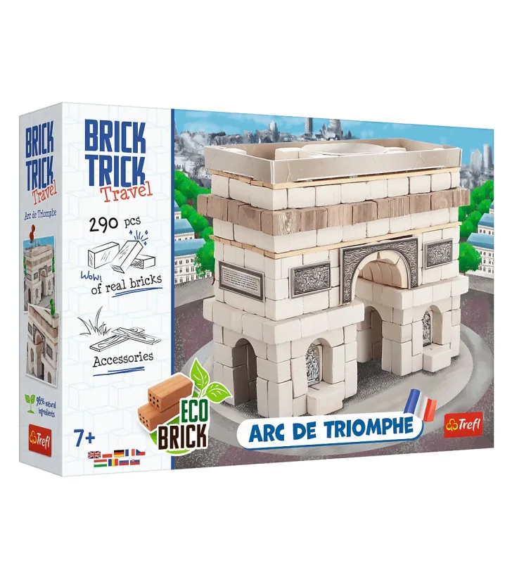 Zbuduj od podstaw Łuk Triumfalny dominujący nad miastem symbol Paryża. Do budowy wykorzystasz prawdziwe cegły i drewniane deseczki. Seria Brick Trick Travel daje możliwość zapoznania z popularnymi zabytkami oraz ich budowaniem od podstaw.