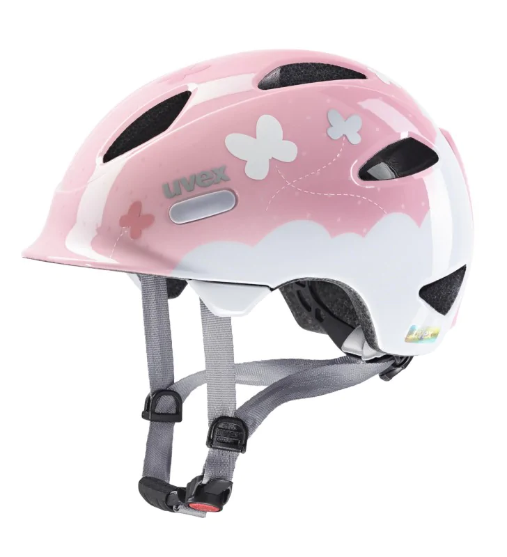 Dziecięcy lekki kask rowerowy z serii oyo style 41/0/047/0515 od niemieckiej firmy Uvex przeznaczony jest dla dzieci o obwodzie głowy od 46 do 50 cm. Gammę ochraniaczy oyo style wyróżnia ciekawa szata graficzna i różnorodna kolorystyka. Model butterfly pink został stworzony w różowym kolorze z białymi elementami, a dodatkową ozdobę stanowi grafika w motyle. Ochraniacz pełni funkcję zabezpieczając głowę przed urazami, a jednocześnie powoduje radość z jazdy. Z uwagi na wzór ochraniacz dedykowany jest dla dziewczynek. Spersonalizowany kask sprawdzi się zarówno dla dziecka siedzącego w foteliku jak i jadącego samodzielnie na rowerku. Urocza grafika przyciągnie wzrok nie tylko dzieci, ale również i osób dorosłych.