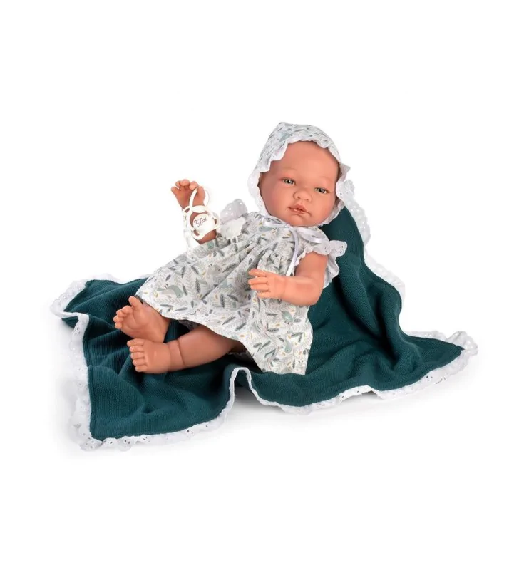 Dziewczynka w uroczej biało-zielonej stylizacji o wysokości 43 cm pochodzi z najnowszej kolekcji marki Asi. Lalka o imieniu Maria to doskonale wykonana postać, która wygląda niezwykle autentycznie. Duże, niebieskie oczy Marii wyglądają jak prawdziwe, nie zamykają się. Lalka ma też gęsty wianuszek rzęs i delikatny zarys brwi. Na główce dziewczynki wyrzeźbiono krótkie włoski imitujące wygląd tych delikatnych i prawdziwych niczym jak u noworodka. Hiszpańska lalka preferowana jest dla dzieci w wieku powyżej 3 lat.