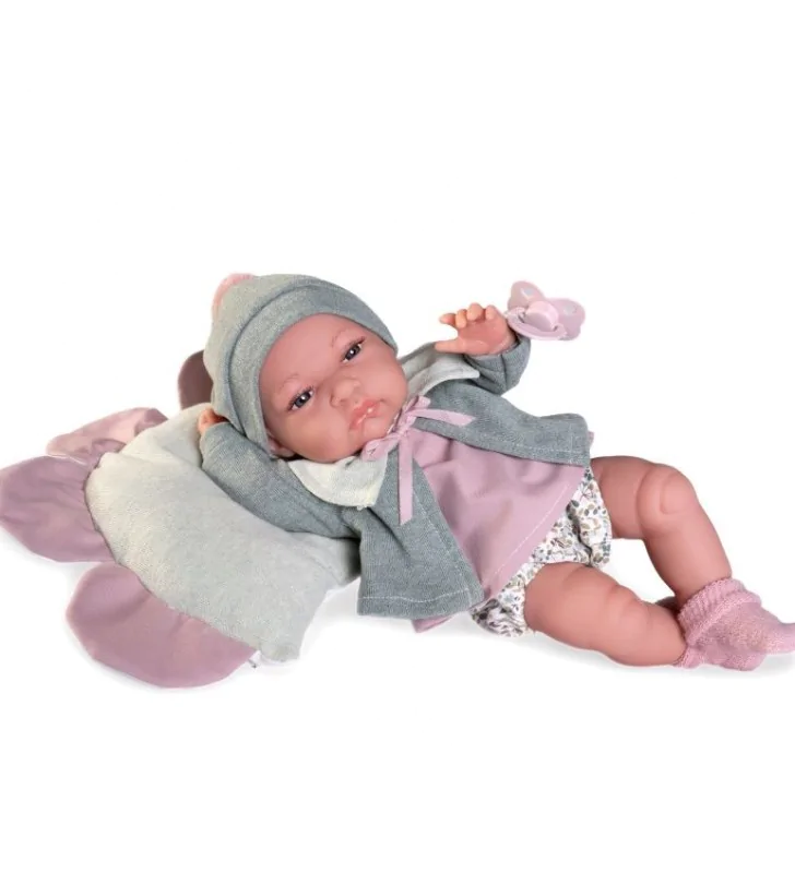 Dzieci uwielbiają opiekować się lalami, które można kąpać i przebierać. 33 - centymetrowy, winylowy bobas 60150 to wyjątkowa wersja bestsellerowego modelu Baby Toneta 60029. Wyróżnia się wysokiej jakości stylowym outfitem w stonowanej, modnej kolorystyce. Brązowooka dziewczynka posiada pozostałość pępowiny i ma zaznaczoną płeć. Unikalny projekt renomowanej marki Antonio Juan urzeka piękną, pogodną, realistycznie wyglądającą twarzyczką. Lalka hiszpańska 60150, wykonana z gładkiego wysokiej jakości winylu, wyróżnia się dopracowanymi detalami, takimi jak: długie rzęsy, ręcznie malowane brwi, usta i paznokcie, czy też wyrzeźbione włoski i fałdki. Miękka poduszka przypominająca kwiatek z płatkami dodaje zabawie atrakcyjności.