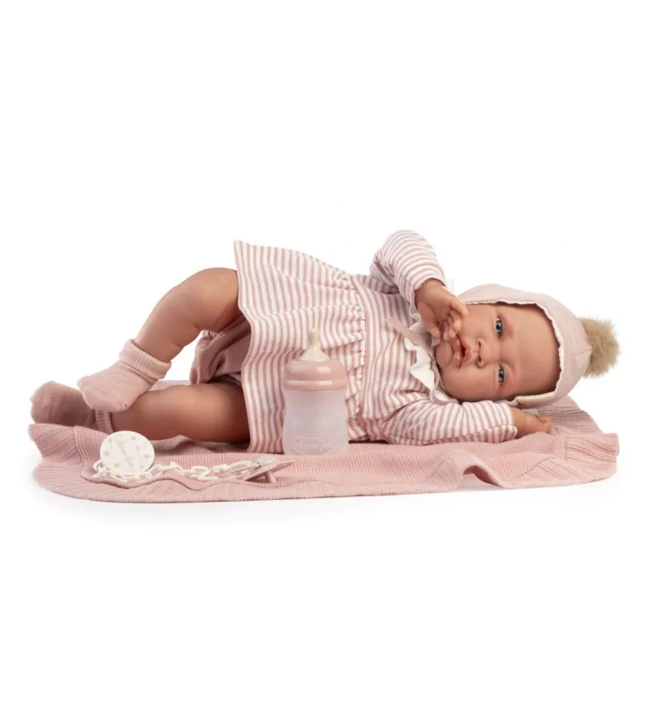 Lua zwraca uwagę naturalnym wyrazem twarzy. Model 33371 został wykonany z wysokiej jakości gładkiego, miękkiego w dotyku winylu, przypominającego w dotyku skórę niemowlaka. Lalka hiszpańska Antonio Juan zachwyca autentycznym wyglądem: