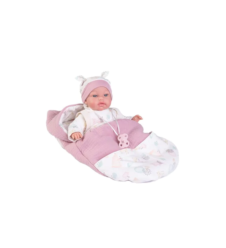 Lalka zapakowana jest w różowe, firmowe pudełko, które wygląda wyjątkowo. Tak zaprojektowany i ozdobiony karton nie wymaga żadnego dodatkowego opakowania. Elegancki kartonik można wykorzystać również jako łóżeczko do spania dla lali. Bobas Toneta marki Antonio Juan jest przeznaczony dla dzieci od 3 roku życia.