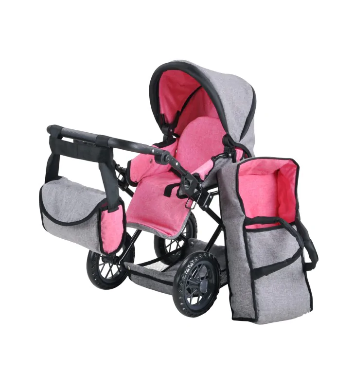 Szary wózek dla lalek Ruby 63122 z różowymi wstawkami od marki Knorr Toys to idealna zabawka dla dziewczynek od 3 roku życia. Wyśmienicie uzupełnia wyposażenie ulubionej lalki. Wykonany bardzo starannie w najmniejszym szczególe i zgodnie z nowoczesnym designem sprawia, że wygląda jak prawdziwy wózek. Model 3w1 daje wiele możliwości zabawy. Możesz korzystać z wózka jako gondoli, spacerówki czy samego nosidełka.