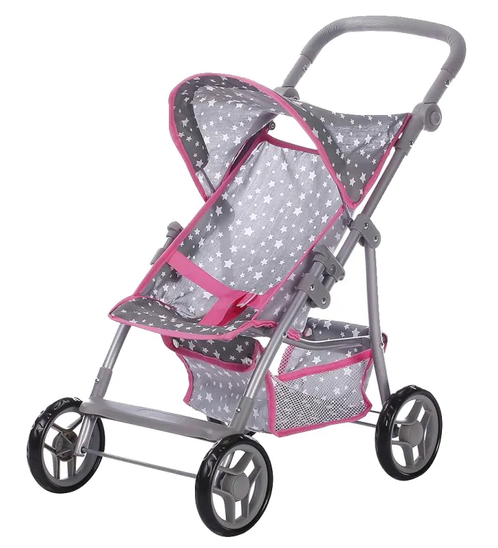 Bez wątpienia zwraca uwagę modna, szaro – różowa kolorystyka i uroczy wzór w białe gwiazdki. Regulowany daszek chroni lalkę przed słońcem i wiatrem. Dzięki zastosowaniu praktycznych pasów bezpieczeństwa zabawka zawsze pozostanie na swoim miejscu. Co więcej, lekka, ważąca około 2 kg spacerówka jest wyposażona w praktyczną siatkę na zakupy, dzięki której dziecko może przewozić wszystkie niezbędne akcesoria, takie jak: ubranka, butelka, smoczek, czy też kocyk.