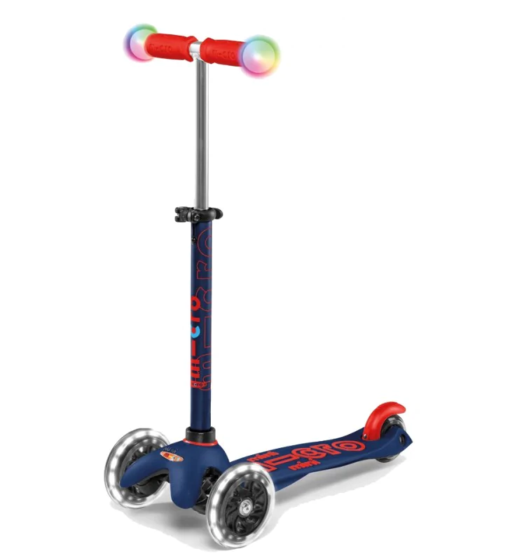 Najnowsza wersja hulajnogi Mini Micro Deluxe Magic wyposażona została nie tylko w świecące rączki, ale również w świecące przednie kółka LED, co zapewnia dobrą widoczność dziecka po zmroku. Koła hulajnogi świecą się podczas jazdy na niej i gasną automatycznie, gdy hulajnoga się zatrzyma. Zamontowane oświetlenie LED zasilane jest energią wytwarzaną w czasie kręcenia się kółek.