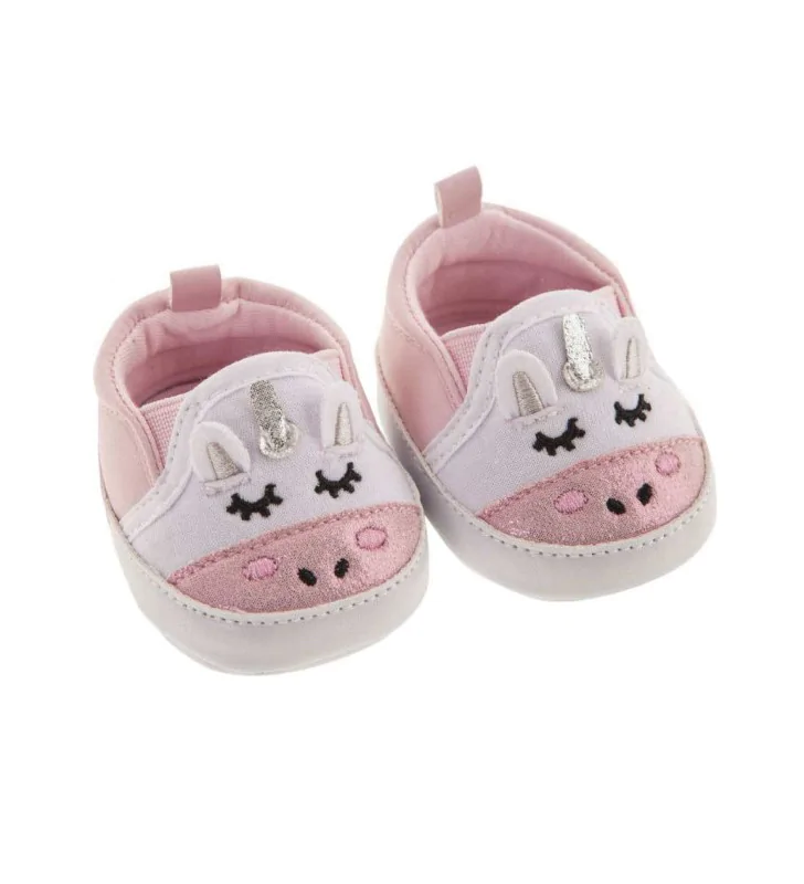 Obuwie wykonano ze skóry z materiałowymi wstawkami w różowej kolorystyce, natomiast podeszwę tworzy białe, skórzane tworzywo. Dodatkowo buciki ozdobiono motywem jednorożca. Buciki są wsuwane dlatego też nawet najmłodsza pociecha nie będzie miała problemu z ich założeniem.