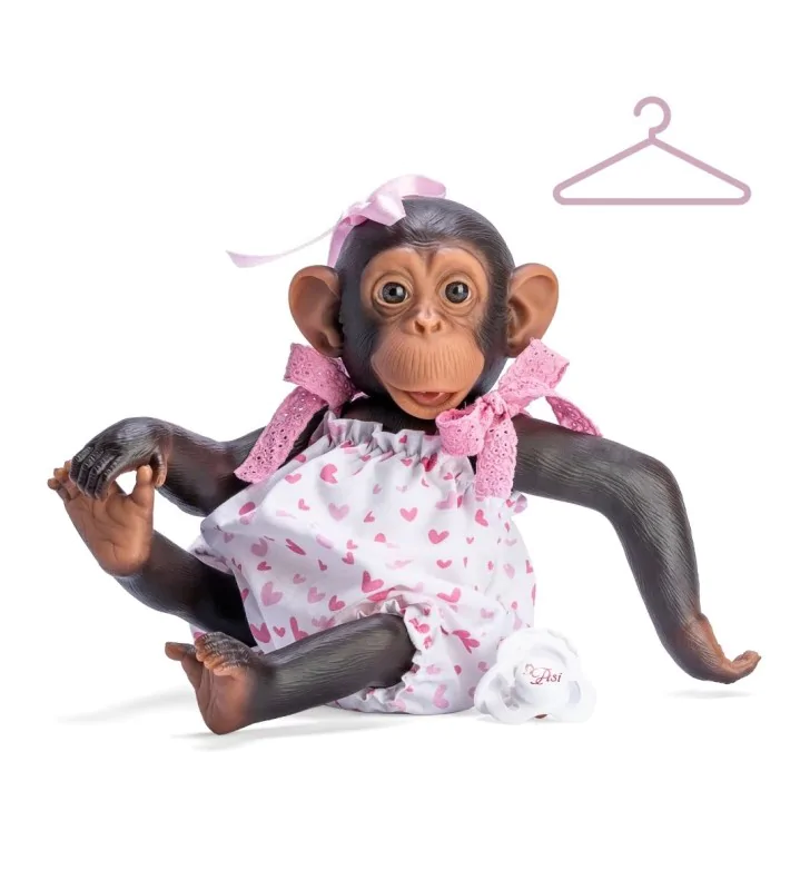 Ręcznie szyty strój został zaprojektowany specjalnie dla małpki hiszpańskiej o imieniu Lola z unikalnej kolekcji ASI Animal Reborn.